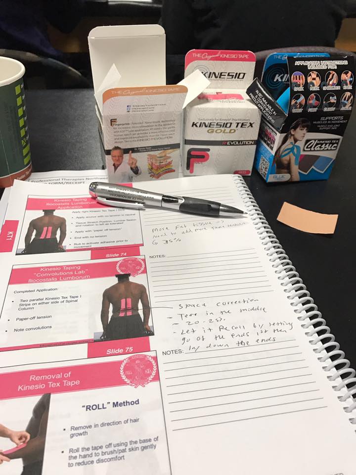 Dr. Thomas attended a 2 day Kinesio Taping seminar in Seattle, WA. You may have seen athletes wearing tape or you may have used it. The taping applications are gentle and help the body with musculoskeletal pain, swelling, and posture support.