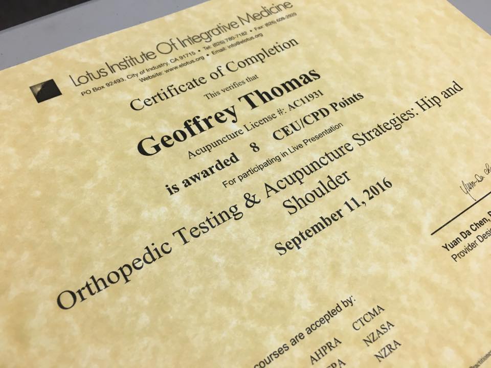 Dr. Thomas is in LA today taking an orthopedic class from Dr. David Wells who is one of the first licensed acupuncturist in California.
